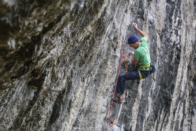 satisfied to redpoint a 7b+ on my second day.